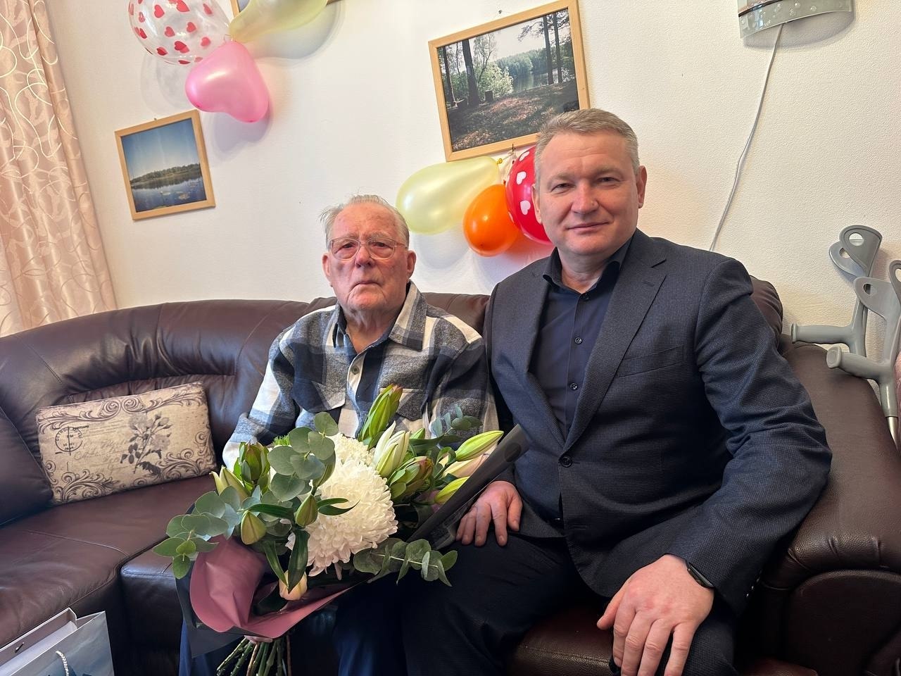 Почетного жителя города Кудрово навестил глава Заневского поселения Вячеслав Кондратьев. Он вручил имениннику цветы и подарки, а также пожелал Алексею Михайловичу крепкого здоровья, счастья и долгих лет жизни.
