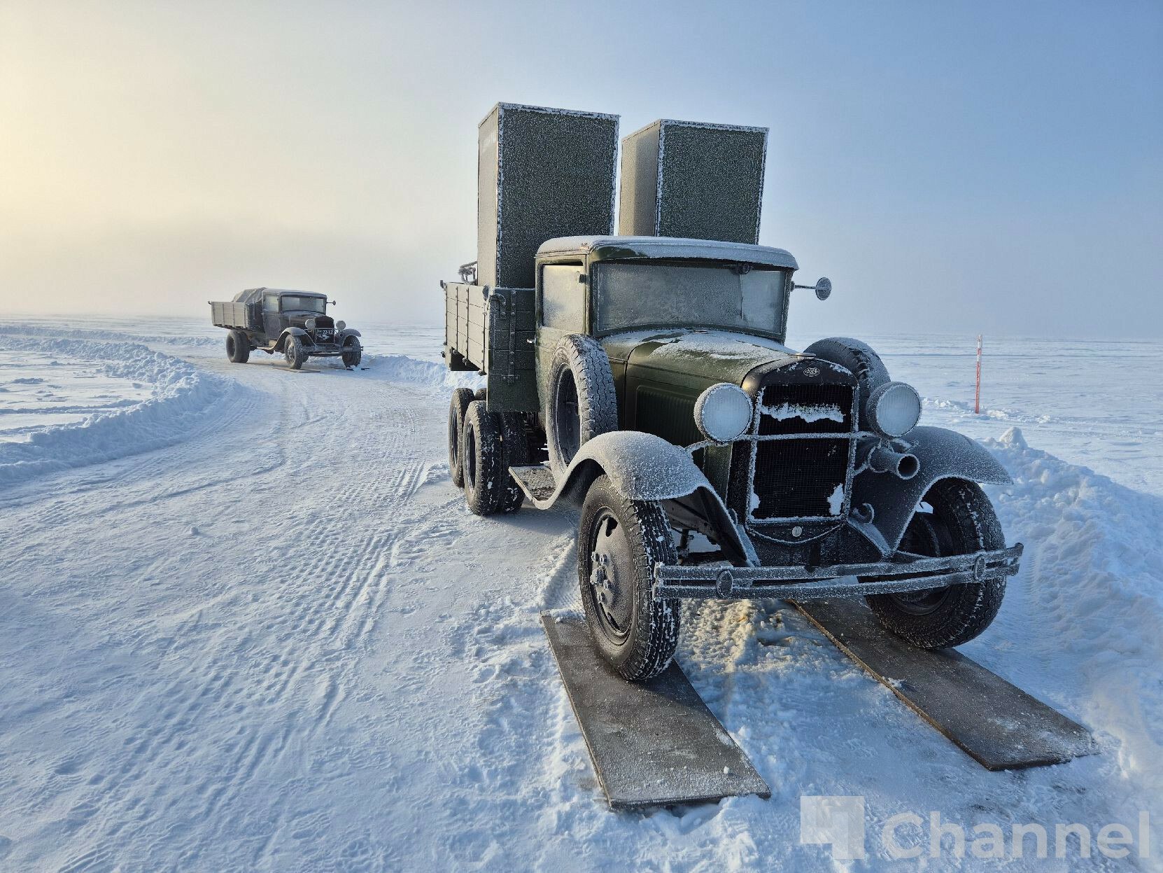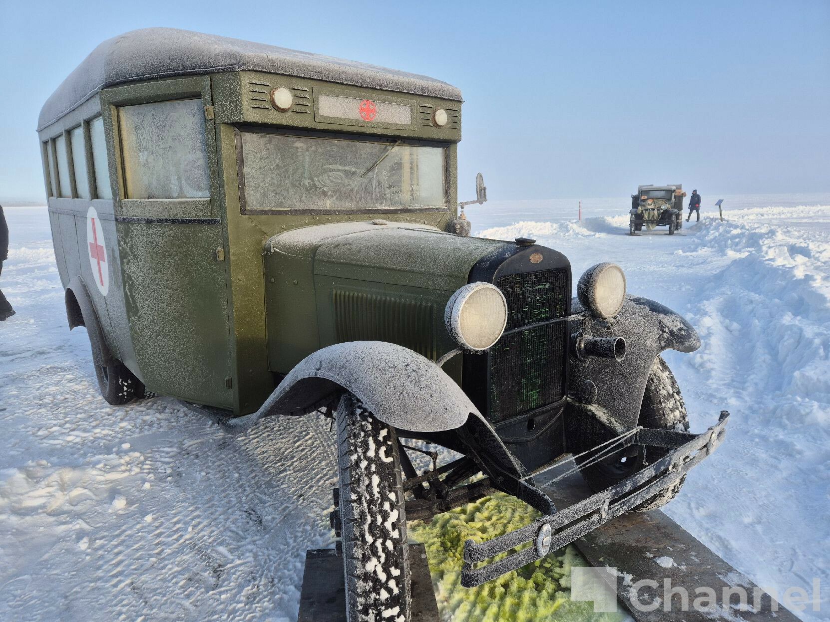Александр Дрозденко поучаствовал в исторической реконструкции движения по ледовому участку Дороги жизни через Ладожское озеро