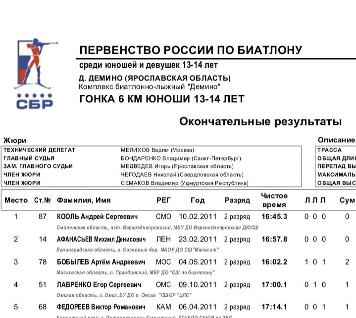 Михаил Афанасьев завоевал 2-е место в индивидуальной гонке на 6 км среди юношей 13–14 лет.