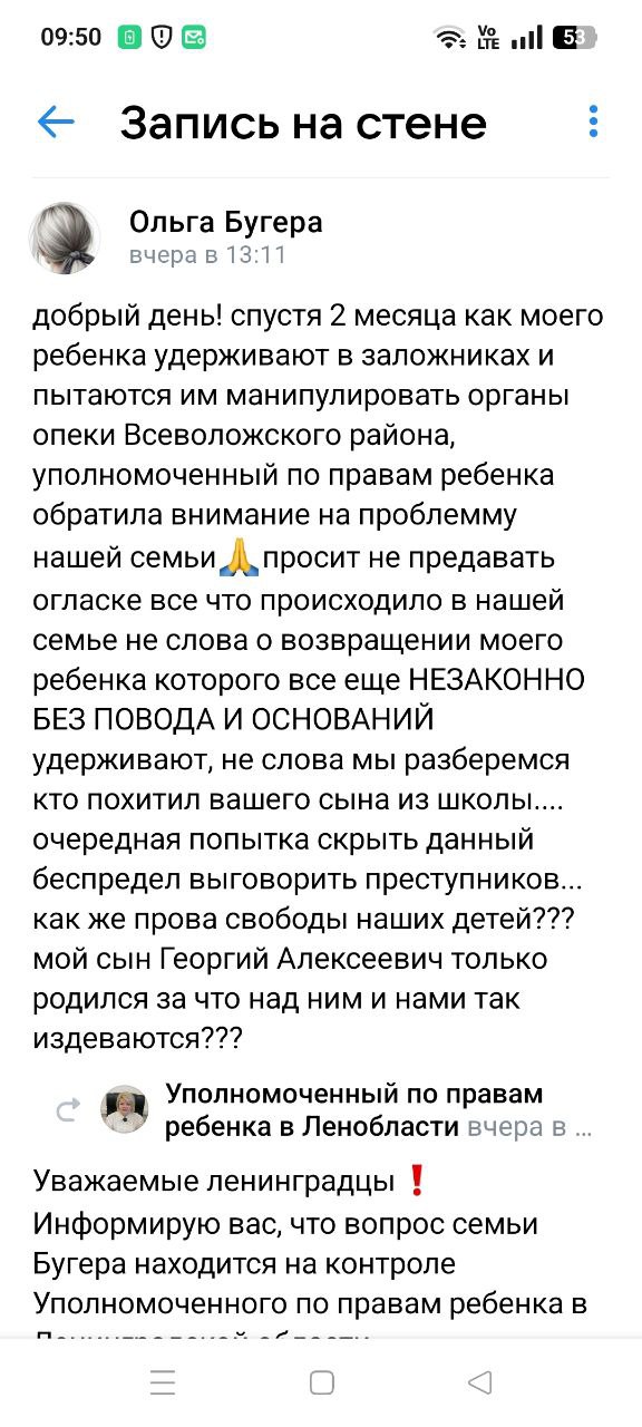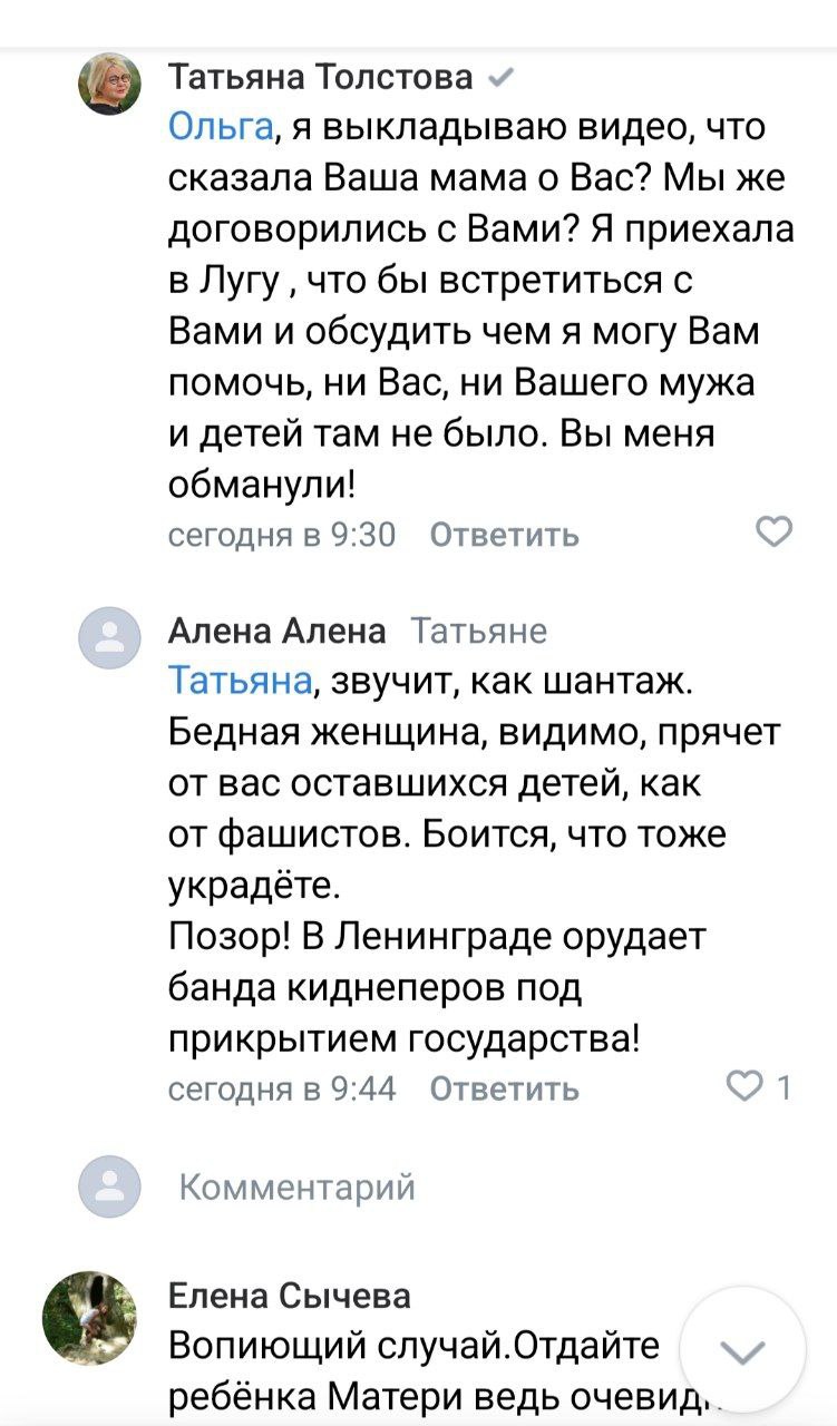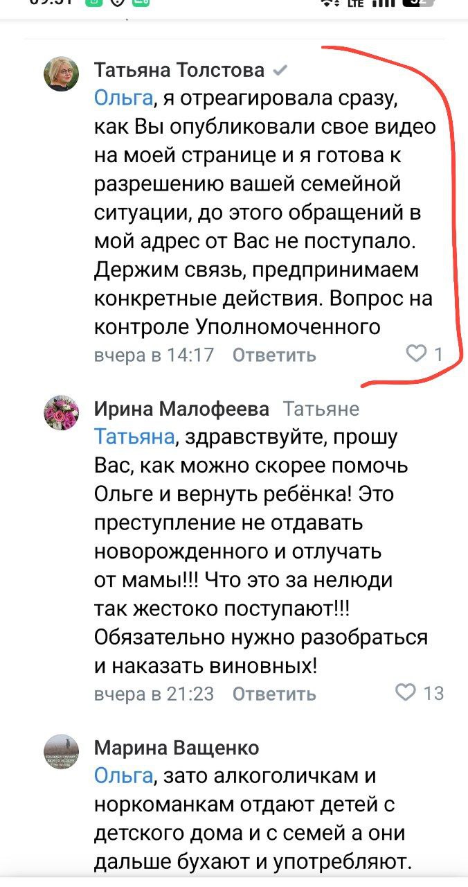 Уполномоченный по правам ребёнка Ленобласти Толстова просит не публиковать персональные данные и не распространять непроверенную информацию, о ситуации она узнала из интернета, когда эта история длится уже два месяца