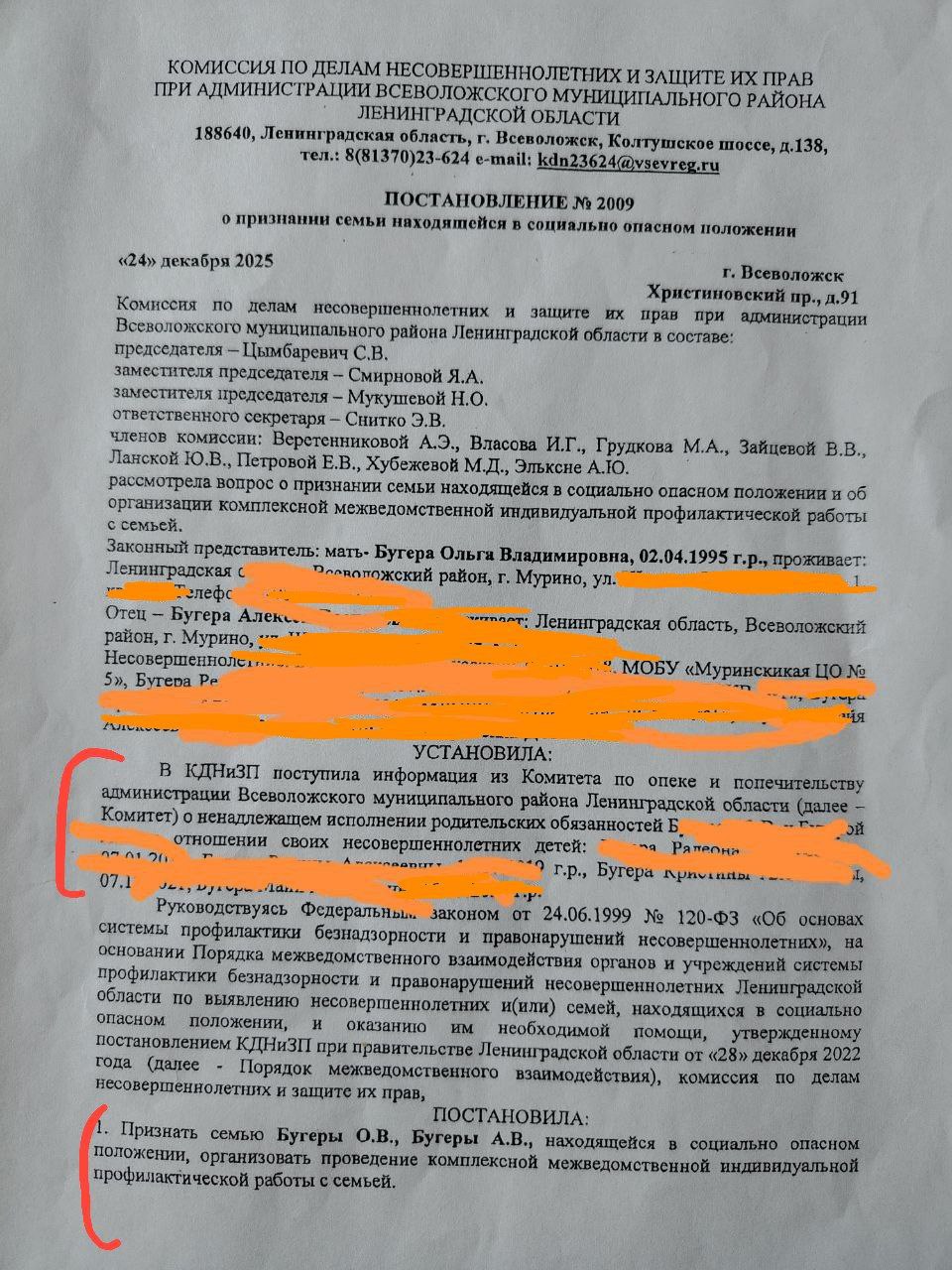КДНиЗП (районная комиссия по делам несовершеннолетних) под руководством председателя Цымбаревич Светланы Валерьевны решила, что родители не исполняют своих обязанностей и постановил признать семью находящейся в социально опасном положении (СОП), что в понимании служб системы профилактики снимает практически любые ограничения по вмешательству в эту семью.