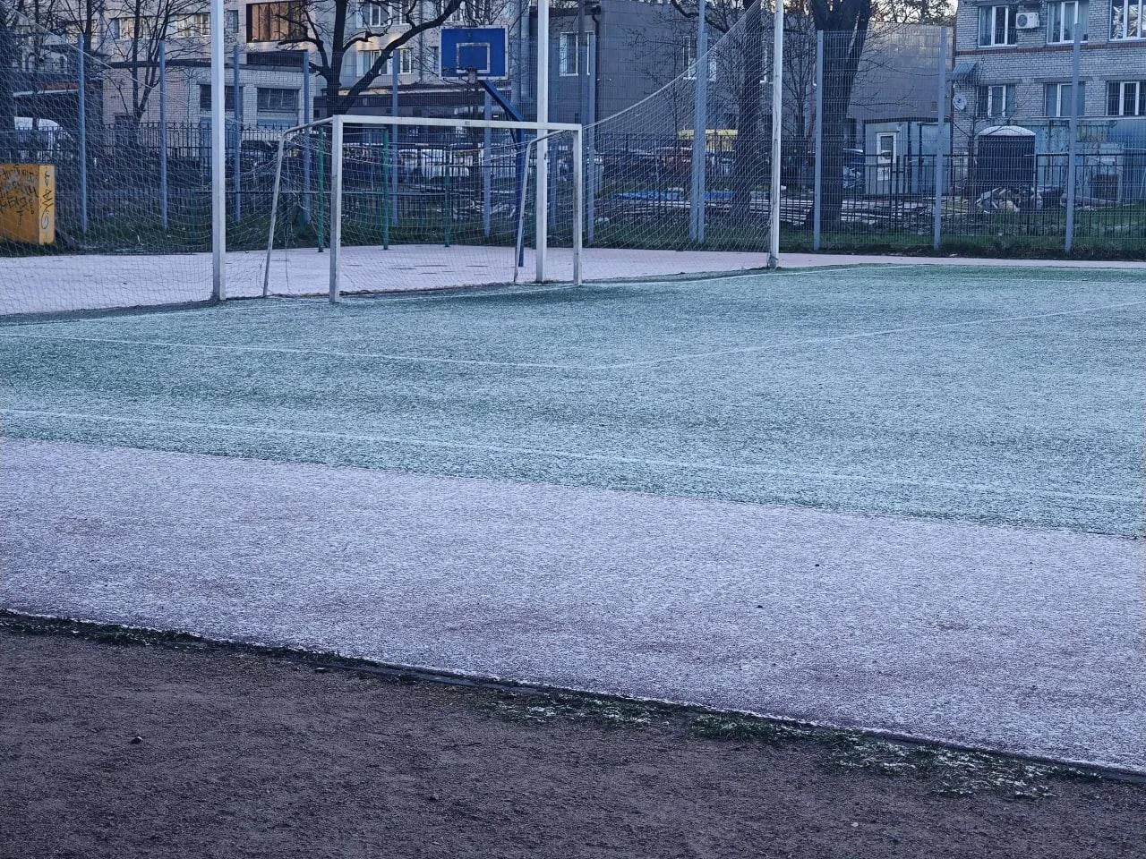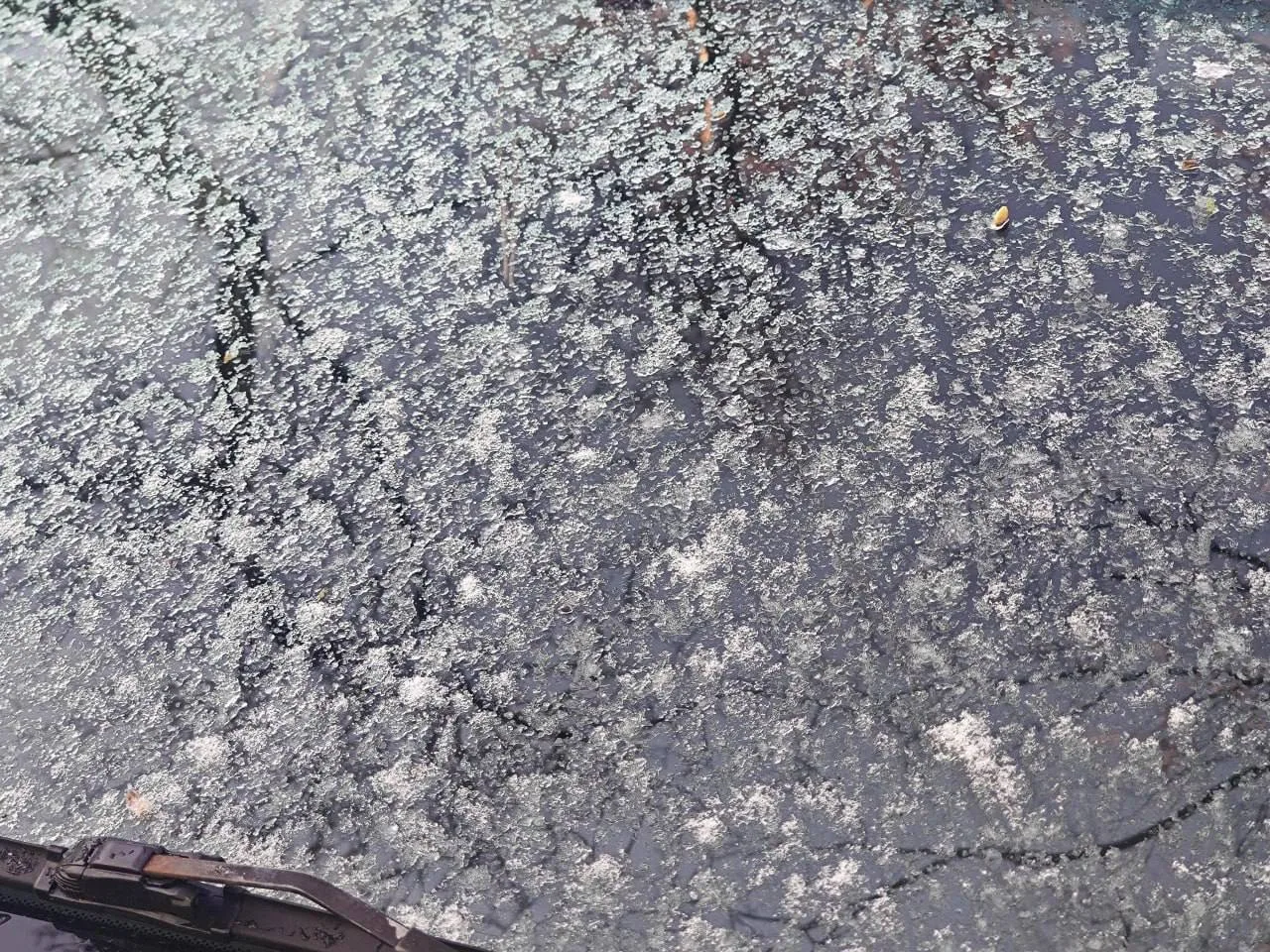 Всем, кто не верит в апрельский снег, показываем: даже после восхода солнца белая корка осталась лежать на траве и листьях в Выборгском районе