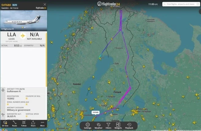 Жители Петербурга и Ленобласти обратили внимание на активность авиации у границ. Согласно открытым данным, вблизи региона регулярно фиксируются шведские самолёты, используемые в том числе для радиоэлектронной разведки.
