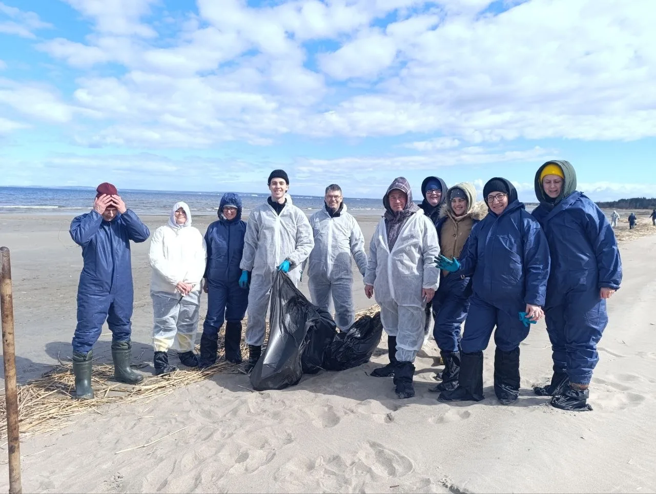 Сотрудники комитета экономического развития и инвестиционной деятельности, Агентства экономического развития и Центра развития промышленности собрались на #субботник47, чтобы помочь с уборкой остатков мазута на побережье заказника.