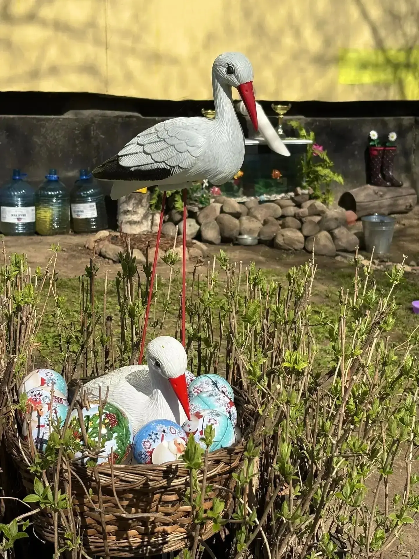 В Янино (Всеволожский район Ленобласти) появился арт-двор с божьими коровками из камней, кашпо из резиновых сапог и семейством аистов в старой плетеной корзине. Креативное пространство на улице Новая своими руками создали четыре местных жительницы.