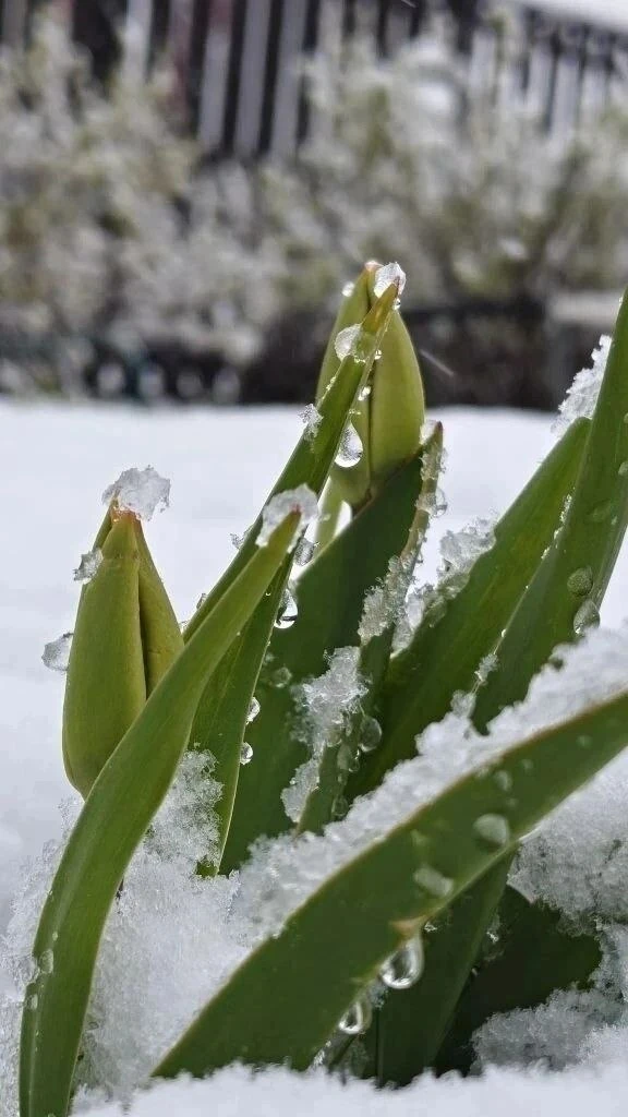Губернатор Ленинградской области Александр Дрозденко в понедельник, 27 апреля, поделился в своем telegram-канале снимками апрельской непогоды. На кадрах - засыпанные снегом цветы, деревья и улицы, а также весенний снеговик.