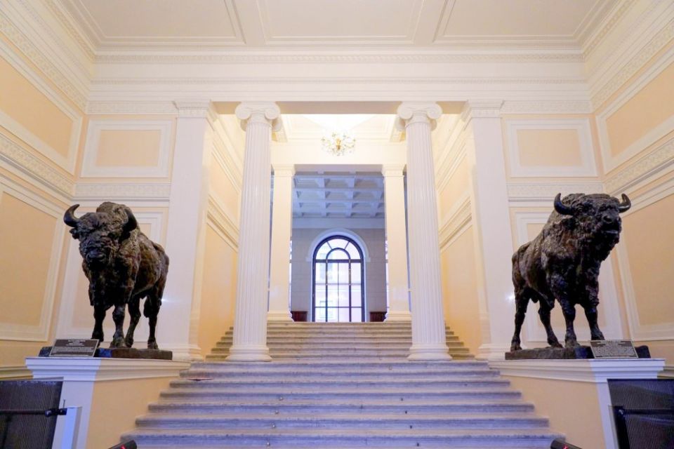 Специалисты восстановили уникальное многослойное покрытие скульптур, благодаря которому гипс выглядит как настоящая бронза. На статуях было много дефектов — трещины, сколы, отслоения лака, краски, загрязнения.«Зубр мычащий» и «Зубр шагающий» стоят в...